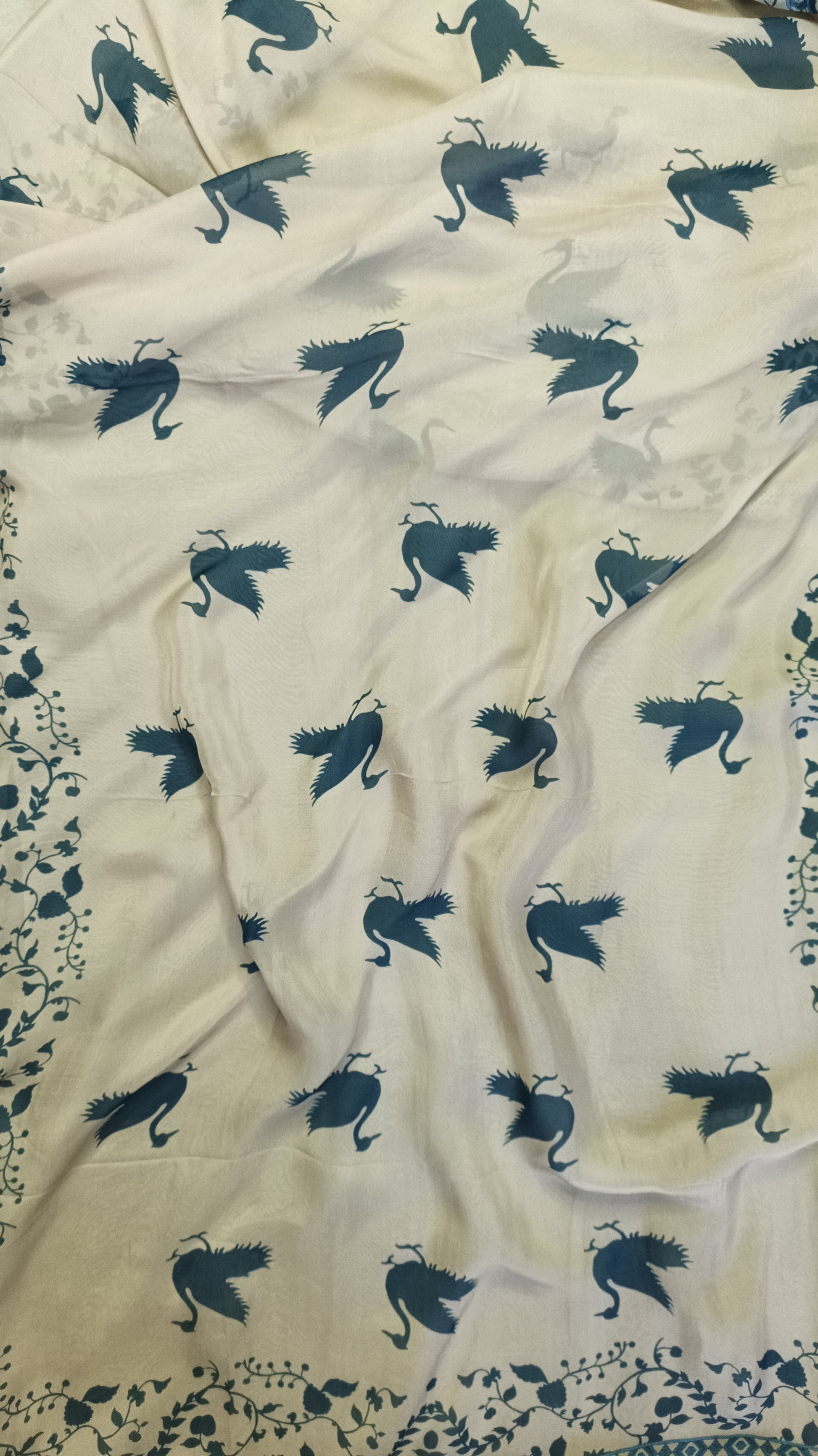 Beige Blue Organza Suit